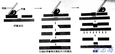焊錫膏印刷成功與否有三個關鍵要素:焊錫膏滾動、填充、脫模: