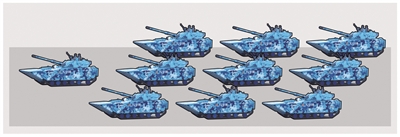 今年參加閱兵的坦克部隊來自北京軍區(qū)第38集團軍。在所有參閱的裝備方隊里,它們將第一個駛過天安門廣場。和其他方隊使用的矩形編隊不同,坦克方隊以箭形編隊前行。這次參閱的坦克為99A式坦克,是99式坦克的改進型,性能與99式坦克相比有本質(zhì)性的提升。坦克方隊受閱長徑達(dá)112.6米,每行駛100米,駕駛員需要調(diào)整方向48次才能保證騎線,展現(xiàn)的可謂是“指尖上的舞蹈”。